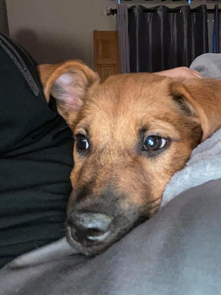 She is a happy gal who is crate trained, good with other dogs, and read more adopted, chocolate lab, good with cats, puppy, retriever mix.